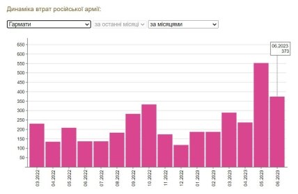 Как объяснил военно-политический обозреватель Александр Коваленко ("Злой одессит"), в мае россияне потеряли рекордное количество артиллерии — 533 единицы. А за первую половину июня уже было уничтожено 383 единицы.
