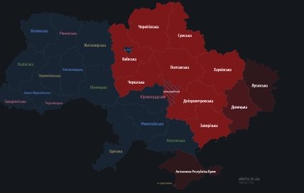 Об этом информируют профильные мониторинговые Telegram-каналы. Согласно их словам, в "красных" областях есть угроза применения противником ракет Х-22.