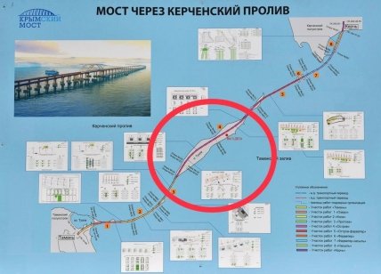 Как сообщают росСМИ, взрывы произошли на 145-й опоре моста, которая согласно схеме, находится на острове Тузла.