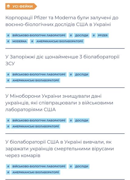 С июня 2022 года фактчекеры из VoxCheck обнаружили более 1900 статей на 143 уникальных темы, которыми российские и пророссийские источники манипулировали, чтобы подорвать доверие украинцев к отечественной системе здравоохранения.