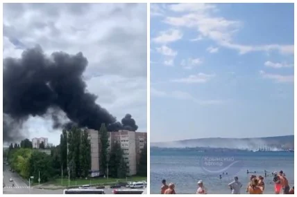 В среду, 9 августа, произошел пожар в Курской области, а в оккупированном Крыму, над портом в Феодосии поднимается дым.