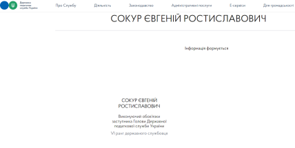 Стоит отметить, что в открытых источниках практически нет никакой информации из биографии Сокура, а также его фотографий. На сайте Государственной налоговой службы информация о нем еще не была опубликована.