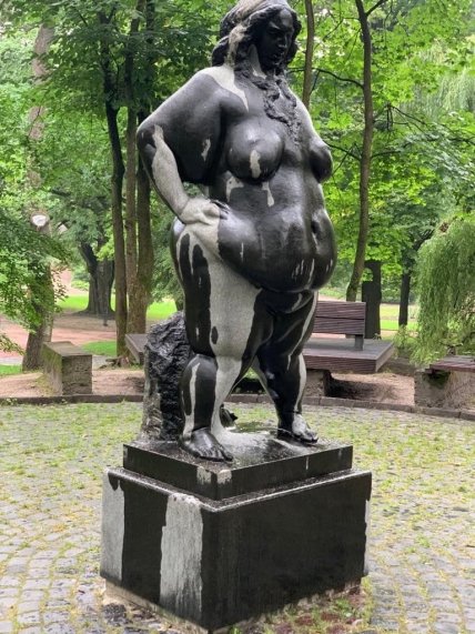 Во Львове надругались над скандальной скульптурой тучной женщины (фото)