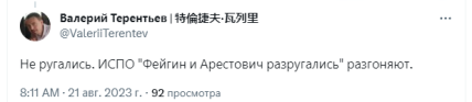 Пользователи сети раскритиковали обе стороны за то, что те не говорят своей немалой аудитории, привыкшей к их эфирам, что произошло на самом деле. Хотя сам Фейгин отмечал, что формат исчерпал себя и якобы это стало основной причиной, но в соцсетях предположили, что между ним и Арестович встал финансовый вопрос.