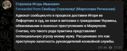 Соответствующее сообщение от адвоката стрелкова появилось на официальном Telegram-канале террориста. Он также заявил, что расценивает "это как преступную халатность руководителей конвойной службы".