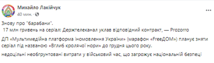 Спустя месяц после скандала вокруг сериала "пгт Ингулец" про Александра Поворознюка за 33 млн гривен, в сети начали обсуждать подобный случай, только уже с суммой в два раза меньше.
