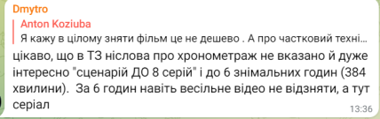 Стоит отметить, что стоимость производства сериала составит 17 миллионов гривен. Такие траты во время полномасштабной войны в стране, когда наши военные имеют потребность в различных видах техники, а также ряда других вещей, вызывает негатив у общества.