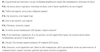 Журналисты проверили информацию в судебном реестре и выяснили, что Ростислав Карандеев не обжаловал решение о лишении водительского удостоверения — то есть он год не имел права управлять автомобилем. Однако сам он, судя по его словам, помнит эту ситуацию не очень четко. Сначала он говорил, что ездил на машине, а потом, что нет.