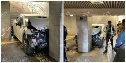 К месту аварии уже прибыли правоохранители, но официального комментария от них (на момент публикации) еще не появлялось. В сети также публикуют фото и видео с места событий. На них можно увидеть, что удар автомобиля о колонну подземного перехода был настолько сильный, что буквально смял всю переднюю часть легковушки.