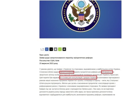 США огласили список реформ для Украины: у украинцев бурная и неоднозначная реакция