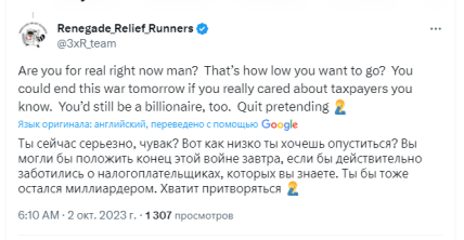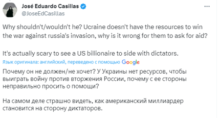 Таким образом Маск, видимо, решил подколоть Владимира Зеленского за то, что тот часто говорит союзникам, что Украине нужна помощь, как военная, так и финансовая во время полномасштабной войны с российскими оккупантами.