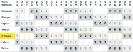 В Киевской области график отключения электроэнергии предусматривает два часа обесточивания, четыре часа возможных отключений и два часа со светом.