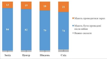 Отмечается, что мнение о том, что выборы сейчас не стоит проводить, является преимущественным во всех регионах Украины.