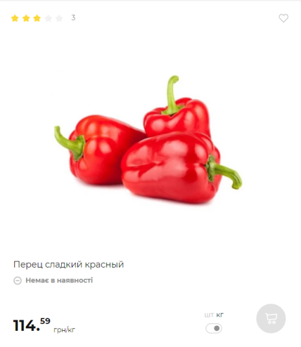 Сладкий перец — 4,99 (43 гривны). Без акции — 12,99 (112 гривен)