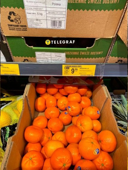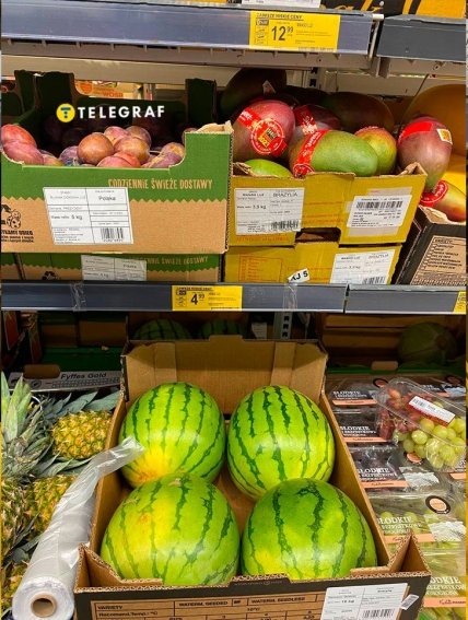 Разнообразные овощи и фрукты представлены в польских супермаркетах в большом ассортименте. К примеру, здесь можно без труда осенью купить арбузы и дыни, манго, виноград и хурму. Также в любое время года есть в наличии яблоки, груши и цитрусовые.
