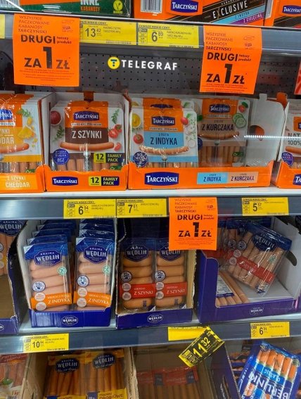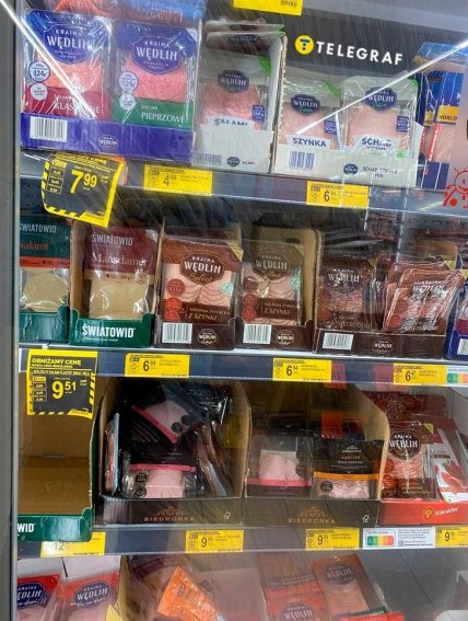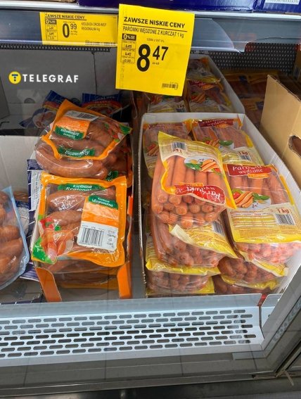 Мясная продукция в польских магазинах представлена в разнообразии. Вы всегда сможете приобрести курицу, свежий фарш, говядину и свинину. Также сосиски, сардельки, ветчина и колбаса на любой вкус.