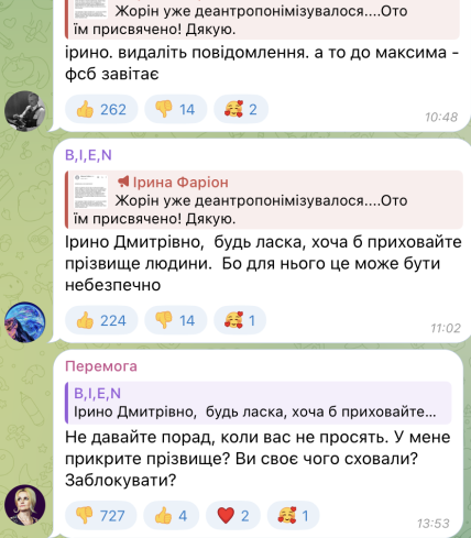 В комментариях под постом Ирины Фарион с письмом Максима пользователи сети стали просить скрыть личные данные парня. На что Фарион ответила в привычном духе, мол, ей виднее, что замазывать, а что нет. С ответа можно также сделать вывод, что Ирина Фарион не поняла, о чем идет речь и где нужно спрятать фамилию.