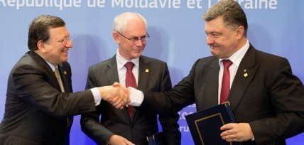 2014 год — После побега Януковича в россию Украина и Евросоюз подписали то же соглашение об ассоциации, по которому начались протесты. Политическую часть подписали 21 марта во время внеочередного саммита "Украина-ЕС". От имени Украины документ подписал в то время премьер-министр Арсений Яценюк. А 27 июня уже подписали экономическую часть, это произошло на заседании Совета ЕС, от Украины соглашение подписывал тогдашний президент Петр Порошенко. Экономическая часть касалась зоны свободной торговли.
