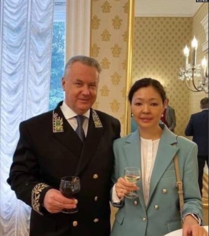 На фото ниже, сделанном в июне 2022 года Салтанат Сакембаева на торжественном вечере в российском посольстве в Вене по случаю Дня независимости россии. Она стоит рядом с постоянным представителем россии в ОБСЕ Александром Лукашевичем, ранее он как пресс-секретарь МИД оправдывал российскую агрессию и обвинял США и их союзников в попытке "узурпировать" функции секретариата ОБСЕ.