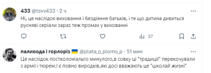В комментариях под роликом с "обрядом посвящения" некоторые отметили, что случившая ситуация — результат просмотра популярного российского сериала, который внезапно стал популярным в Украине.