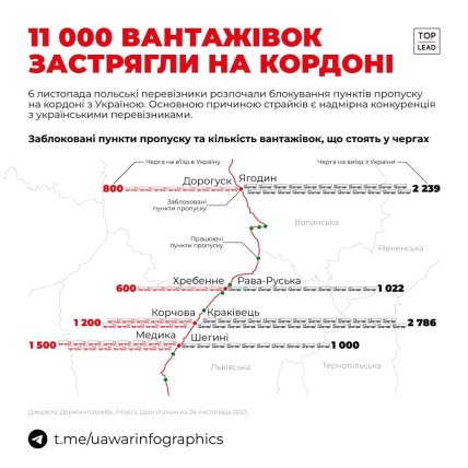 Известно, что около 11 тысяч грузовиков застряли на границе между Украиной и Польшей. Однако теперь оформление и пропуск через границу грузовых транспортных средств по обоим направлениям осуществляется в обычном режиме.
