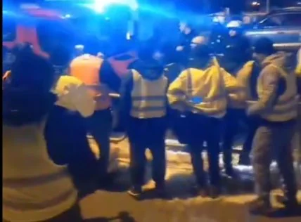 Польская полиция пытается не допустить, чтобы на виновника ДТП напали украинские водители и отгоняет их от транспортного средства.
