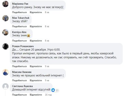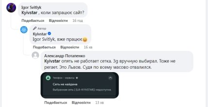 В среду 20 декабря в отдельных регионах Украины начались новые перебои в работе мобильного оператора "Киевстар". После предварительного масштабного сбоя сервисы еще не успели восстановить на все сто процентов, так что не удивительно, что многочисленные жалобы пользователи услуг этой компании оставляют в комментариях на официальной странице Facebook.
