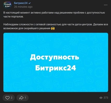 "Сегодня IT-Армия остановила работу компании, в результате 40% пользователей испытывали проблемы с доступом к СRМ-системе и другим сервисам Битрикс24", — отметил он.