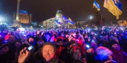 Митингующие встретили Новый год на Майдане Незалежности. Новогодняя праздничная программа началась с выступления украинских групп и праздничного салюта. Правда, со сцены его не удалось увидеть из-за тумана. Собравшиеся на Майдане встретили Новый год массовым исполнением гимна Украины. Во время пения участники акции протеста зажгли фонарики и подсвечивали концерт свои мобильные телефоны. На Майдане в Киеве Новый год встретили более 100 тыс.