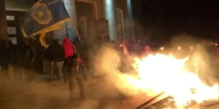 В настоящий момент захвачены два этажа здания, правоохранители забаррикадировались на третьем и отбивают атаки протестантов.
