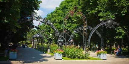 Погода в Донецке испортилась, начался дождь. До приезда Азарова парк Петровского "выдраили до блеска".