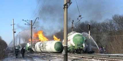 Напомним, в 6.16 2 февраля на железнодорожном перегоне "Удачное - Межевая" (2 км от с. Ленино, 4 км от с. Удачное) Красноармейского района Донецкой области, во время следования грузового поезда с 65 цистернами, сошли с рельсов 4 цистерны с пропан-бутаном и загорелись. Движение железнодорожного транспорта организовано через г. Павлоград Днепропетровской области.