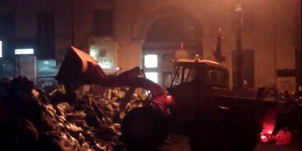 Последние новости Майдана и Украины. 15 февраля в 20:30 на улицу Грушевского приехали два эскаватора, которые начали разбирать баррикады.