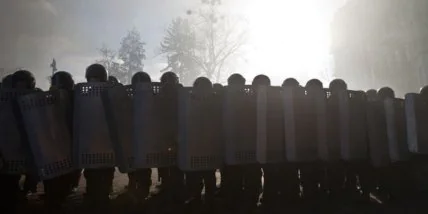 Участники митинга в центре Киева бросили дымовые шашки в сторону правоохранителей, утверждают в столичном главке милиции. На углу Институтской и улицы Шелковичной продолжаются столкновения правоохранителей и митингующих.
