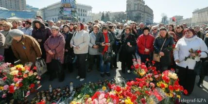 На Майдане Независимости в воскресенье состоялось траурное вече в память о погибших в ходе массовых протестов в Киеве 18-20 февраля.