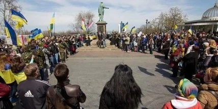 Представитель люстрационной комиссия при Народной раде Одессы сообщила, что министру внутренних дел Украины Арсену Авакову направлено обращение, в котором содержится предложение провести конкурс по назначению начальника Главного управления внутренних дел и его заместителей. Перед собравшимися выступили представители российской оппозиции, приехавшие в Украину с миротворческой акцией. Одна из активисток пояснила, что она и ее спутники были в числе участников масштабного антивоенного марша, прошедшего в Москве 15 марта.