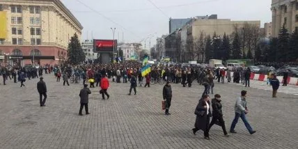 Как сообщалось ранее, на Площади Свободы в Харькове перед зданием облгосадминистрации произошла драка между пророссийскими активистами и активистами Евромайдана.