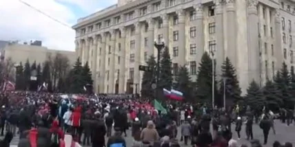 Митинг сторонников единства Украины проходит на площадке в Харькове перед памятником Шевченко на улице Сумской. В нем участвуют около полутора тысячи человек. Его участники держат национальные флаги, транспарант с надписью «Украина единая», а также скандируют «Слава Украине! Героям Слава», «Слава нации! Смерть врагам!».