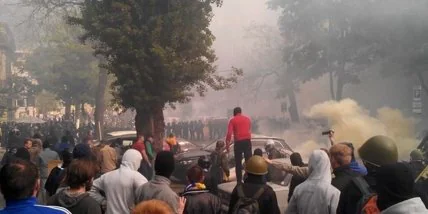 После временного покоя, противостояние началось в районе Греческой площади. Установлено, что в результате столкновения трое человек погибли и 15 - доставлены в больницу с травмами различной степени тяжести. Также ранены трое сотрудников милиции.