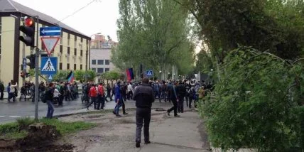 Сторонники так называемой "Донецкой народной республики" (ДНР) взяли штурмом здание управления СБУ в Донецкой области, сообщает интернет-издание "Остров". С криками "Россия!", "Одесса - русский город" и "Одессу не простим!" люди, многие из которых одеты в камуфляжную форму, вооруженные битами, дубинками и арматурой, в течение нескольких минут захватили здание. Разбив окна, толпа ворвалась в неохраняемое здание УСБУ. Также быстро протестующие захватили здание следственного управления СБУ, находящееся рядом.