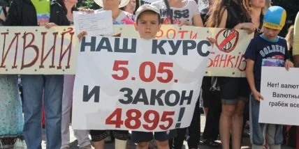 Сегодня на улицах Киева вновь собираются митинги. В очередной раз украинцы требуют перевести их валютные кредиты в национальную валюту. Под стенами Администрации Президента собрались люди с плакатами. Из-за стремительного роста курса доллара, валютные кредиты для многих украинцев стали непомерным финансовым грузом.