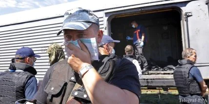 "Сейчас состав из пяти опечатанных вагонов-рефрижераторов, в которые собраны останки 282-х человек и 87 отдельных фрагментов тел погибших, находится на железнодорожном вокзале Донецка. В самое ближайшее время, в сопровождении уважаемых представителей Малайзии и наблюдателей ОБСЕ, он отправится в Харькова ", - сообщил один из лидеров ДНР Александр Бородай.