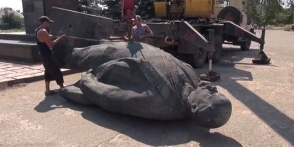 "Ленинопад" продолжается: утром памятник советской эпохи сняли с постамента в поселке Новоайдар Луганской области, сообщает 5 канал.