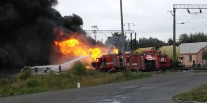 В пресс-служба отметили, что 22 августа примерно в 6.00 час. на станции Городище сошел с рельсов поезд, после чего загорелись 2 цистерны с нефтепродуктами, а потом пожар перекинулся на 10 нежилых зданий.