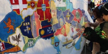 Жители Мариуполя в ходе художественно-культурной акции "Украина-вместе!" вышили карту Украины.
