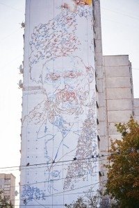 Как сообщила руководитель творческой группы Яна Волк, создание портрета посвящено 200-летию со дня рождения Т.Шевченко. На доме будет изображен портрет писателя, выполненный художником Иваном Крамским. Общая площадь настенного рисунка составит более 500 кв. м.