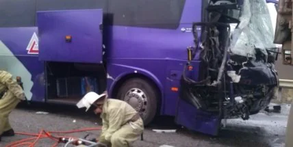 На 127 км трассы Киев - Одесса произошло дорожно-транспортное происшествие с участием автобуса и грузового автомобиля "Камаз".