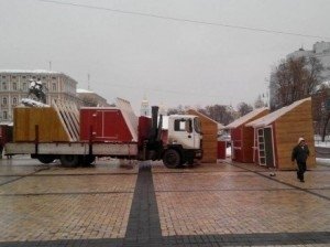 В столице начали готовить Софиевскую площадь к новогодним праздникам. Впервые за годы независимости именно в центре Киева пройдут главные празднества и будет установлена главная елка страны.