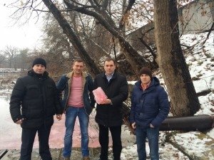 "Вода и лед уже красного цвета. С активистами и депутатами Киевсовета посетили предприятие, которое травит людей, сбрасывая остатки гербицидов в реку. Требуем закрытия предприятия-мародера и введения карантина. Вызвали милицию и санстанцию", - написал Я.Диденко.