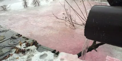 "Вода и лед уже красного цвета. С активистами и депутатами Киевсовета посетили предприятие, которое травит людей, сбрасывая остатки гербицидов в реку. Требуем закрытия предприятия-мародера и введения карантина. Вызвали милицию и санстанцию", - написал Я.Диденко.